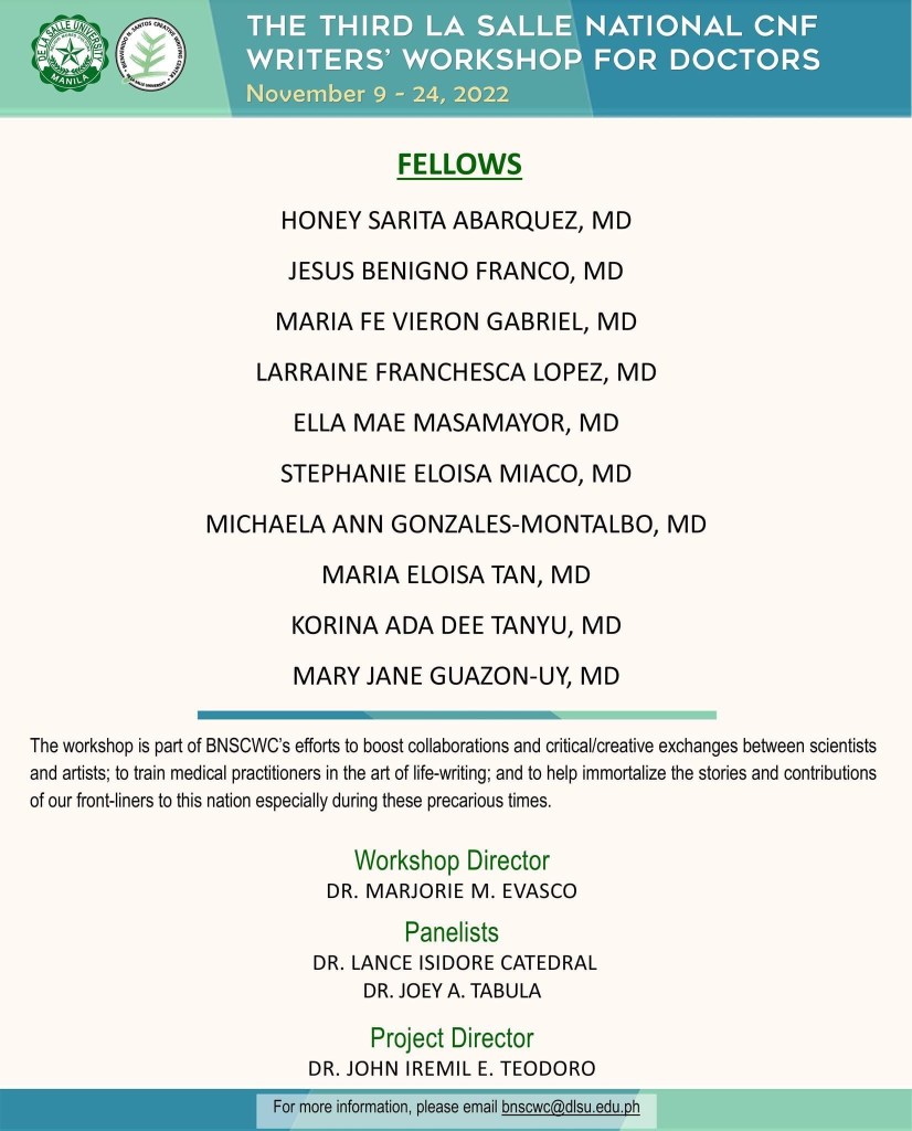Naalala ko tuloy ang sinabi ng makatang Merlie Alunan tungkol sa pagtula. Sabi niya, “What is poetry? Poetry is human speech.” Sa tingin ko, ang lahat ng uri ng pagsulat ay pagtanghal sa tinig natin bilang tao. At oo, tao muna tayo bago isang doktor. Doktor man tayo ng medisina o literatura.